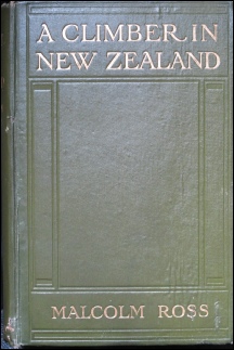Ross M. A CLIMBER IN NEW ZEALAND. Edward Arnold. 1914 1st. pp316. 30 illus. from photographs by the author. orig. green cloth gilt. front a little wrinkled. two small holes in sp. new e.p.'s decent copy of a rare book. Very Good- £225