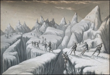 MacGregor J. LEAVING THE GRANDS MULETS. 'The Ascent of Mont Blanc' by Albert Smith 1855 'La Lune' oil print by Baxter 106 x 152 mm. Near Fine