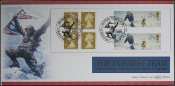 Hillary & Tenzing. THE EVEREST TEAM. First to Conquer the Famous Mountain in 1953. Benham. 2003 illus. first day cover no. 51 / 5000 Extreme Endeavours franked over 2 Everest 1st class stamps and 4 1st. class. Fine £35